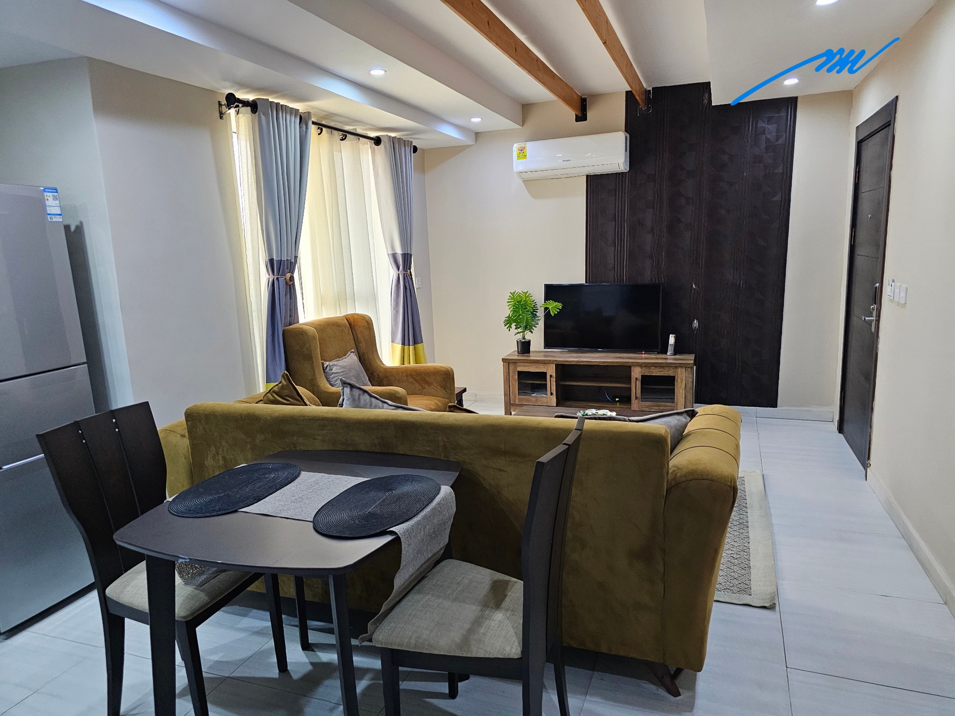 travelers or couples, the suite offers a separate living area, a bedroom with a
